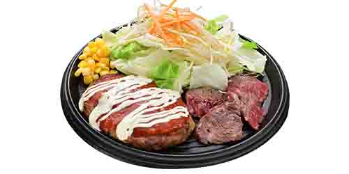 | 健康バークビーフ50g(加工肉) +焼きたてハンバーグ120g (トマトソース) |
